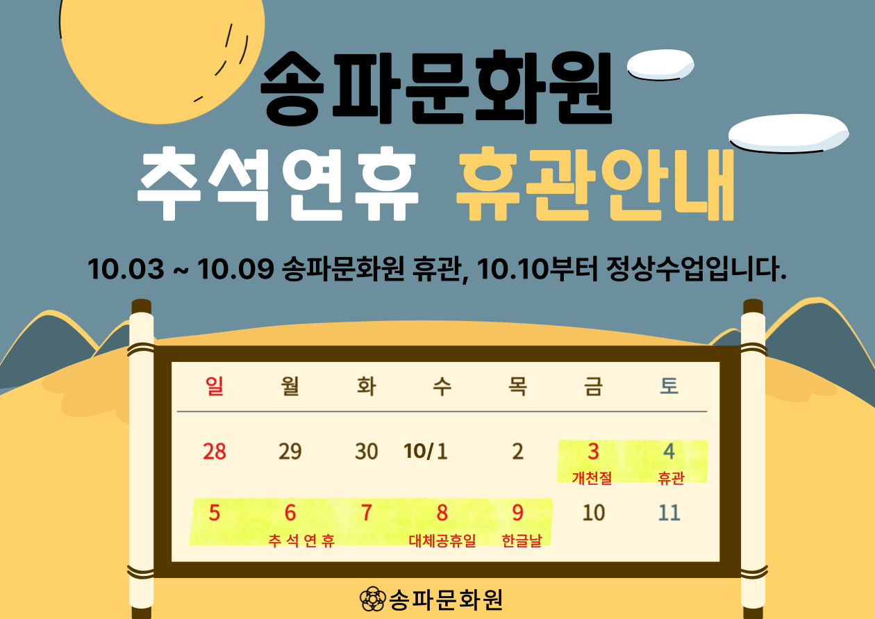 »ç¾÷ÀÚµî·Ï¹øÈ£ 219-82-01536 | ¼¿ïƯº°½Ã ¼ÛÆÄ±¸ ¿Ã¸²ÇÈ·Î 44 TEL 02-414-0354 | FAX 02-414-0357 COPYRIGHT (C) 2006 SONGPA CULTURAL CENTER ALL RIGHTS RESERVED.