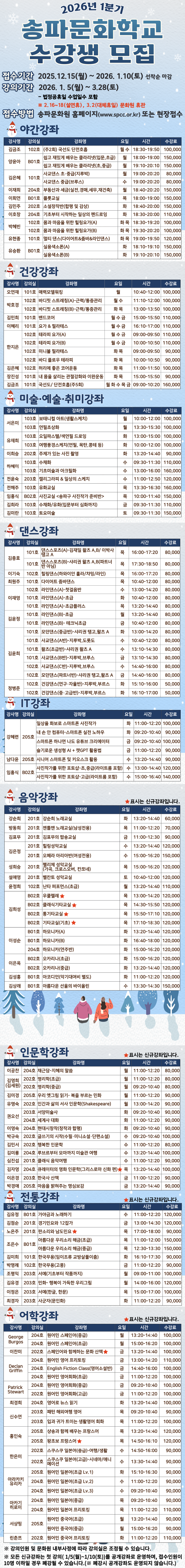 ✔ À̹ø ºÐ±â¿¡µµ ´Ù¼öÀÇ ½Å±Ô°Á°¡ °³¼³µÉ ¿¹Á¤ÀÔ´Ï´Ù. ¸¹Àº °ü½É ºÎʵ右´Ï´Ù.¢¾ (2026 Á¦1ºÐ±â ¼ÛÆÄ¹®ÈÇб³ ½Å±Ô°Á °Ô½Ã±Û Âü°í!)