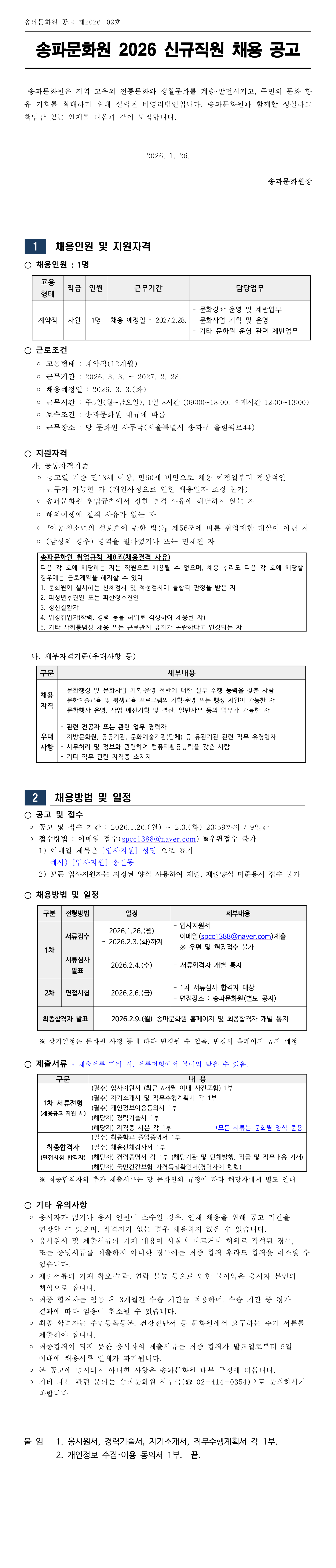 | ÷ºÎÆÄÀÏ1: ¼ÛÆÄ¹®È¿ø ½Å±ÔÁ÷¿øÃ¤¿ë(2026.1.26).pdf |